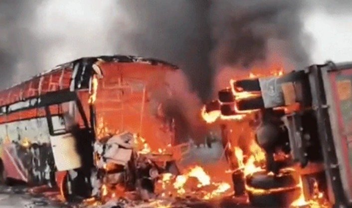 आंध्र प्रदेश। आंध्र प्रदेश के मार्कापुरम के पास गुरुवार तड़के एक दर्दनाक सड़क हादसे में निजी ट्रैवल बस में आग लगने से कम से कम 13 यात्रियों की मौत हो गई, जबकि 20 यात्री घायल हो गए। हादसा सुबह करीब 5ः45 बजे हुआ। जानकारी के मुताबिक, एक निजी ट्रेवल्स बस तेलंगाना के जगित्याल/निर्मल से आंध्र प्रदेश के कालिगिरी/नेल्लोर की ओर…