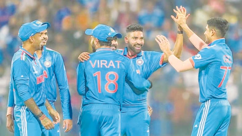 मुंबई।मोहम्मद शमी, मोहम्मद सिराज और जसप्रीत बुमराह- इस तिकड़ी की धारदार गेंदबाजी की बदौलत भारत ने श्रीलंका को मुंबई के वानखेड़े स्टेडियम में 302 रनों से हराकर ऐतिहासिक जीत अपने नाम की है. श्रीलंकाई पारी की शुरुआत में ही भारतीय गेंदबाजों ने ऐसा कहर बरपाया कि श्रीलंका की टीम उबर ही नहीं पाई. श्रीलंका की पूरी पूरी टीम 55 रन पर आउट हो गई. भारत इस मैच में बड़ी जीत के साथ विश्व कप 2023 की अंक तालिका में दोबारा पहले पायदान पर आ गया है और भारत सेमीफाइनल में अपनी जगह पक्की कर ली है. 358 रनों के लक्ष्य का पीछा करते हुए श्रीलंका ने बेहद खराब शुरुआत की. टीम ने सिर्फ 3 रनों पर 4 विकेट खो दिए. इसमें पहला पथुम निसांका के रूप में पहला विकेट जसप्रीत बुमराह ने लिया और बाकी तीन विकेट मोहम्मद सिराज ने हासिल किए.