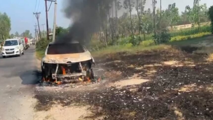 रुड़की । पिरान कलियर थाना क्षेत्र में एक कार में अचानक आग लग गई है, जिससे क्षेत्र में अफरा-तफरी का माहौल बन गया। सूचना मिलते ही पुलिस और दमकल की टीम मौके पर पहुंची और कार सवार दो व्यक्तियों को कड़ी मशक्कत के बाद बाहर निकाला। इसके बाद आग पर काबू पाया गया। हादसे में कार पूरी तरह से जलकर राख हो गई है।