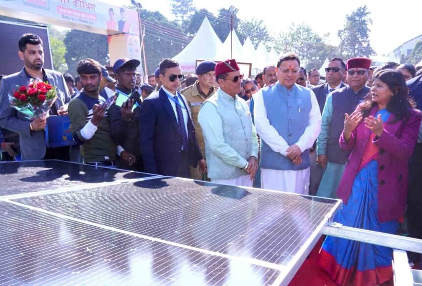 देहरादून । मुख्यमंत्री पुष्कर सिंह धामी ने सोमवार को रेंजर्स ग्राउंड देहरादून में ‘ उत्तराखण्ड के प्रथम सोलर मेले दो दिवसीय ‘सौर कौथिग’ का शुभारंभ किया। इस अवसर पर उन्होंने पीएम सूर्य घर योजना, मुख्यमंत्री सौर स्वरोजगार योजना और सोलर वाटर हीटर योजना के लाभार्थियों को अनुदान राशि के चेक प्रदान करने के साथ ही यूपीसीएल मुख्यालय में बनाई गई सौर ऊर्जा आधारित म्यूरल आर्ट का लोकार्पण भी मुख्यमंत्री ने किया। मुख्यमंत्री ने सौर ऊर्जा जन जागरूकता के लिए चलाई जा रही सोलर वैन को भी हरी झण्डी दिखाकर रवाना किया। इसके माध्यम में आगामी सौ दिनों तक सोलर ऊर्जा से संबंधित विभिन्न जानकारी लोगों को दी जायेगी। साथ ही विभिन्न स्टॉल पर जाकर सौर ऊर्जा के क्षेत्र में किए जा रहे नवोन्मेषी प्रयोगों की जानकारी ली।