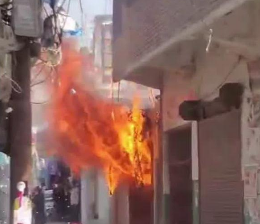 कपडे़ की दुकान में लगी भीषण आग, सारा सामान जलकर राख