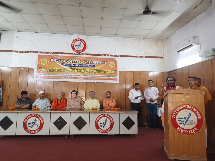 देहरादून। देवभूमि उत्तराखंड से संचालित लोकप्रिय संगठन भैरव सेना का पांचवा स्थापना दिवस उत्तरांचल प्रेस क्लब में रविवार को धूमधाम से मनाया गया। स्वामी दर्शन भारती, उत्तराखंड सिनेमा जगत के प्रदीप भंडारी, मिशन देवभूमि फिल्म के निर्माता रवि मंमगाई तथा अन्य अतिथियों ने दीप प्रज्वलित कर कार्यक्रम का शुभारम्भ किया। कार्यक्रम का संचालन संगठन के केंद्रीय सचिव संजय पंवार ने किया। कार्यक्रम के दौरान समाज के विभिन्न क्षेत्रों मे उत्कृष्ठ कार्य करने वालों को संगठन द्वारा सम्मानित करने के साथ ही संगठन विस्तार के अंतर्गत कार्यकारिणी में दायित्वों की घोषणा भी की गई।