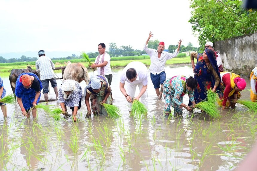 सीएम धामी ने खटीमा में की धान रोपाई, किसानों के श्रम को किया नमन