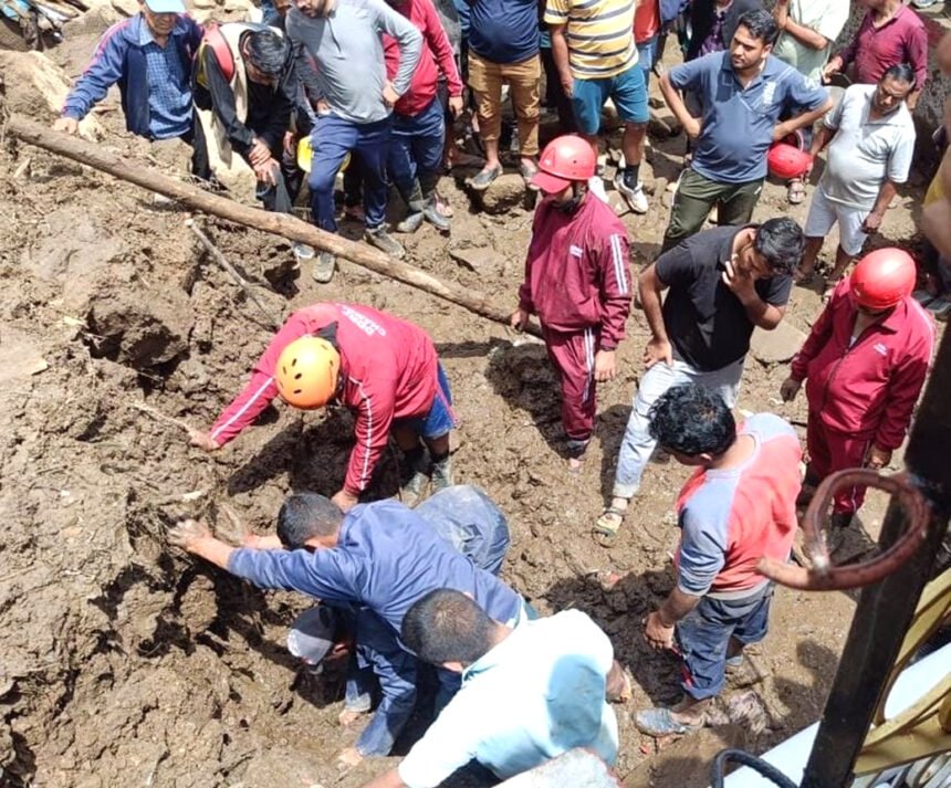 भारी बारिश से घर और गाड़ियां मलबे में दबी