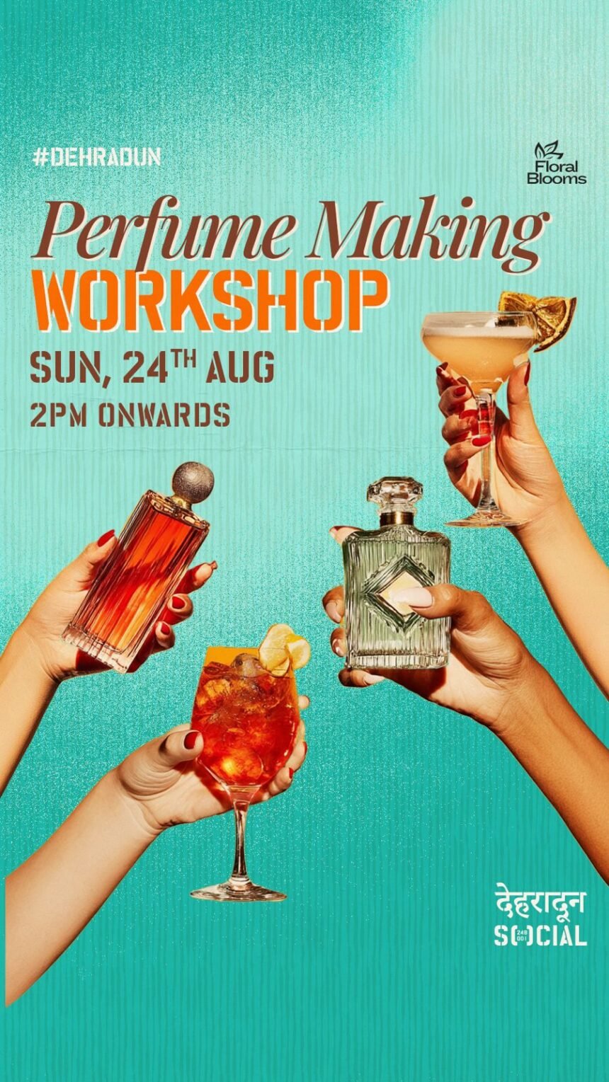 देहरादून: देहरादून सोशल रविवार, 24 अगस्त को दोपहर 2:00 बजे से शाम 5:00 बजे तक एक अनोखी परफ़्यूम मेकिंग वर्कशॉप आयोजित करने जा रहा है। इस कार्यक्रम में प्रतिभागियों को लक्ज़री-ग्रेड एसेंशियल ऑयल्स की मदद से विशेषज्ञों के मार्गदर्शन में अपना ख़ुद का ख़ुशबूदार परफ़्यूम बनाने का अवसर मिलेगा।