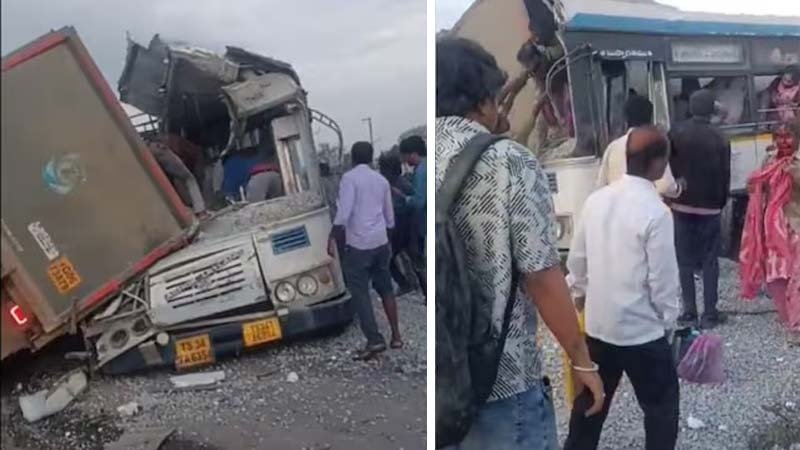 हैदराबाद। तेलंगाना के रंगारेड्डी ज़िले में हैदराबाद-बीजापुर राष्ट्रीय राजमार्ग पर सोमवार सुबह एक सरकारी बस और बजरी से लदे ट्रक की जोरदार टक्कर हो गई। हादसे में 18 लोगों की मौत हो गई और 15 अन्य घायल हो गए, जिनमें से कुछ की हालत गंभीर है। पुलिस ने बताया कि चेवेल्ला मंडल में मिर्ज़ागुडा के पास तेलंगाना राज्य सड़क परिवहन निगम की एक बस और बजरी से लदे एक ट्रक आमने सामने टकरा गए। यह बस लगभग 70 यात्रियों को लेकर बस तंदुर इलाके से हैदराबाद जा रही थी। ट्रक पर लदी बजरी के बस पर गिरने से आगे की छह सीटें पर बैठी सवारियां पूरी तरह से कुचल गईं। अधिकारियों को आशंका है कि मृतकों की संख्या और बढ़ सकती है।