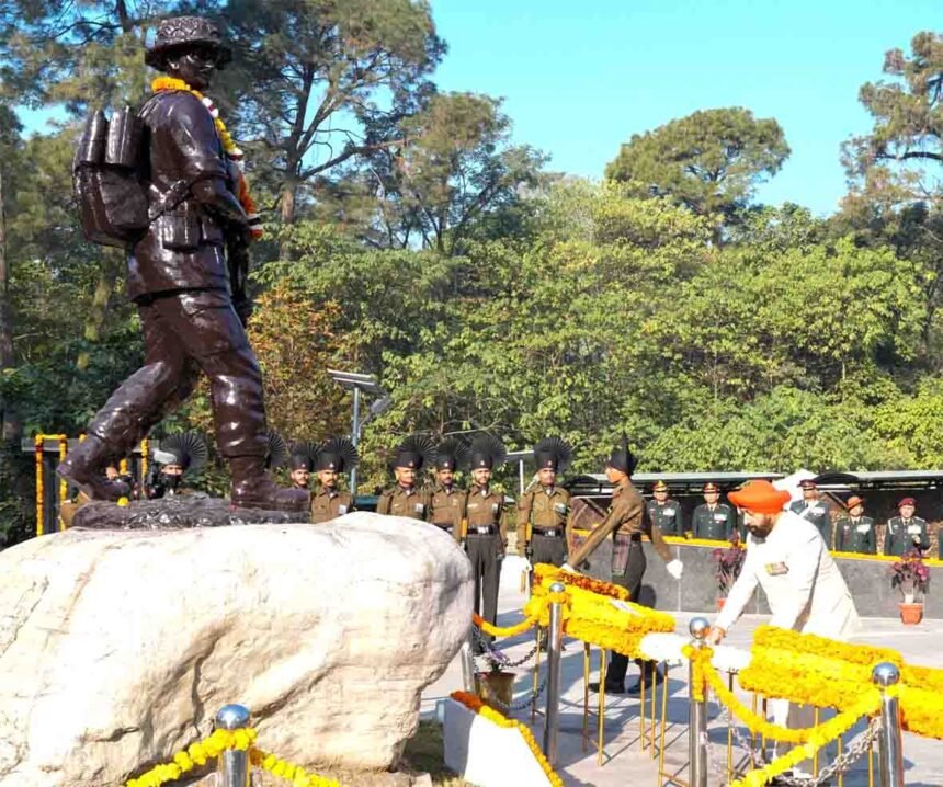 देहरादून। राज्यपाल लेफ्टिनेंट जनरल गुरमीत सिंह (से नि) ने मंगलवार को विजय दिवस के अवसर पर शौर्य स्थल, देहरादून में मातृभूमि की रक्षा के लिए अपने प्राणों का सर्वोच्च बलिदान देने वाले वीर शहीदों को पुष्पचक्र अर्पित कर श्रद्धांजलि दी। इस अवसर पर राज्यपाल ने उपस्थित सेवारत एवं पूर्व सैनिकों से भेंट कर उनसे संवाद किया तथा राष्ट्र की रक्षा में उनके अमूल्य योगदान की सराहना की।