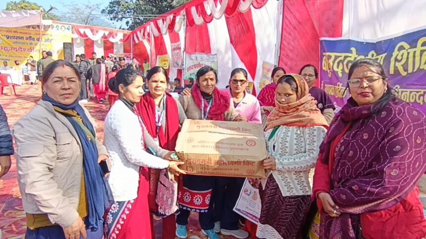महिला सशक्तिकरण एवं बाल विकास विभाग की ओर से 03 महिलाओं को महालक्ष्मी किट तथा 10 ग्रामीण महिलाओं को बेबी किट वितरित की गईं।