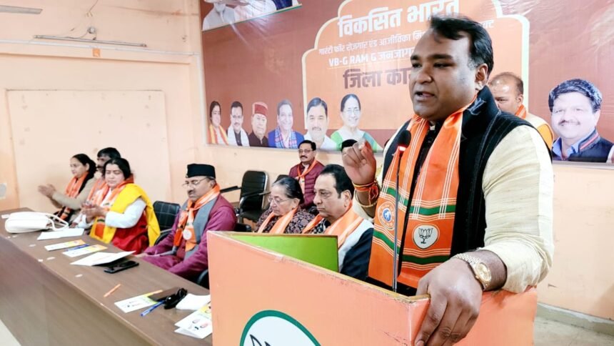 देहरादून । शुक्रवार को भारतीय जनता पार्टी महानगर कार्यालय पर महानगर अध्यक्ष सिद्धार्थ उमेश अग्रवाल के नेतृत्व में वीबी जी राम जी योजना के तहत जिला कार्यशाला आयोजित की गई।