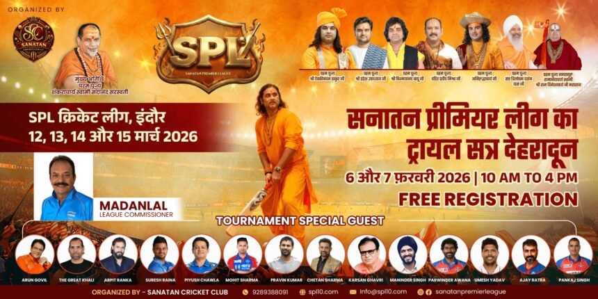 देहरादून :- जिस पल का सभी क्रिकेट प्रेमियों और सनातन संस्कृति से जुड़े युवाओं को बेसब्री से इंतजार था, वह आखिरकार आ गया है। सनातन प्रीमियर लीग (SPL) के पहले सीजन का आगाज जल्द होने जा रहा है और इसके फ्री ट्रायल्स es भी देशभर में शुरू हो चुके हैं। टूर्नामेंट के ट्रायल का दूसरा चरण देहरादून में 6 और 7 फरवरी को अभिमन्यु क्रिकेट एकेडमी में आयोजित किया जा रहा है, जिसमें पहले दिन ट्रायल के लिए पंजीकरण कराए जाएंगे और दूसरे दिन खिलाड़ियों का चयन होगा।