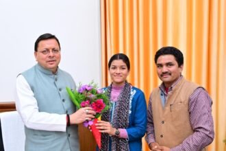 मुख्यमंत्री आदर्श ग्राम सारकोट की ग्राम प्रधान प्रियंका नेगी ने सीएम से की भेंट