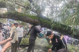 पंडितवाड़ी में सड़क पर गिरा विशालकाय पेड़