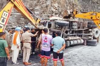 बदरीनाथ राष्ट्रीय राजमार्ग पर सिलेंडर से भरा ट्रक पलटा