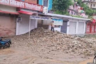 भारी बारिश से सिमली बाजार में स्थित दुकानों में घुसा मलवा