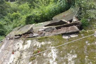 मसूरी में भारी बारिश के बाद लैंडस्लाइड, नगर पालिका का पुश्ता ढहा