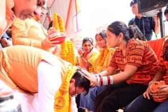 सीएम धामी ने कांवड़ियों के चरण धोकर व गंगाजल भेंट करके किया उनका स्वागत