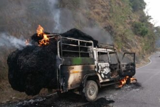 पुराली भरी पिकअप में लगी आग