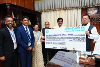 उत्तरांचल ग्रामीण बैंक ने सीएम राहत कोष में 35,49,371 की धनराशि प्रदान की