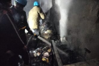 पुलिस व फायर की टीम ने कड़ी मशक्कत के बाद किया आग…