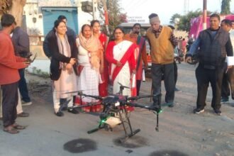 ड्रोन के माध्यम से कीटनाशक के छिड़काव का दिया डेमो