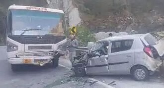 बद्रीनाथ हाइवे पर नन्दप्रयाग के पास बस और कार में टक्कर मां बेटा घायल